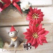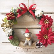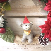 かわいいマスコット付きの造花(アーティフィシャルフラワー)でできた小さめのクリスマスリースです!