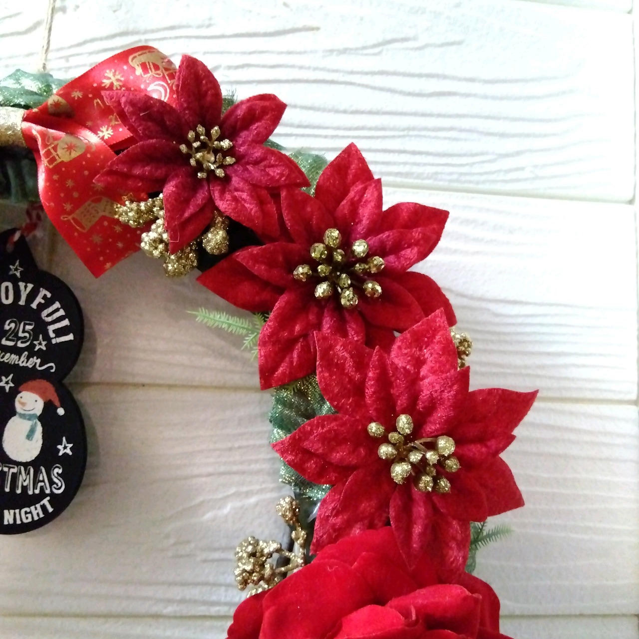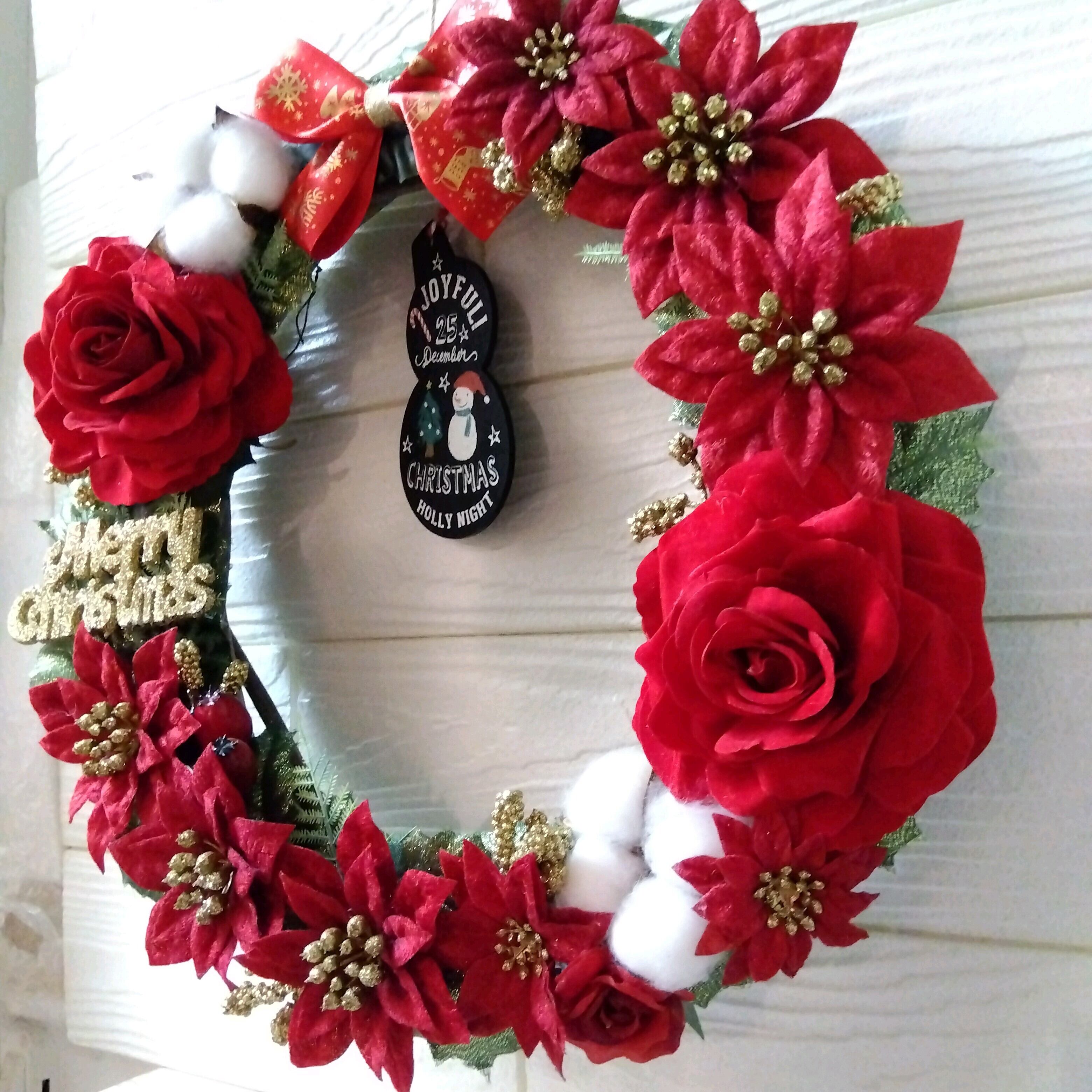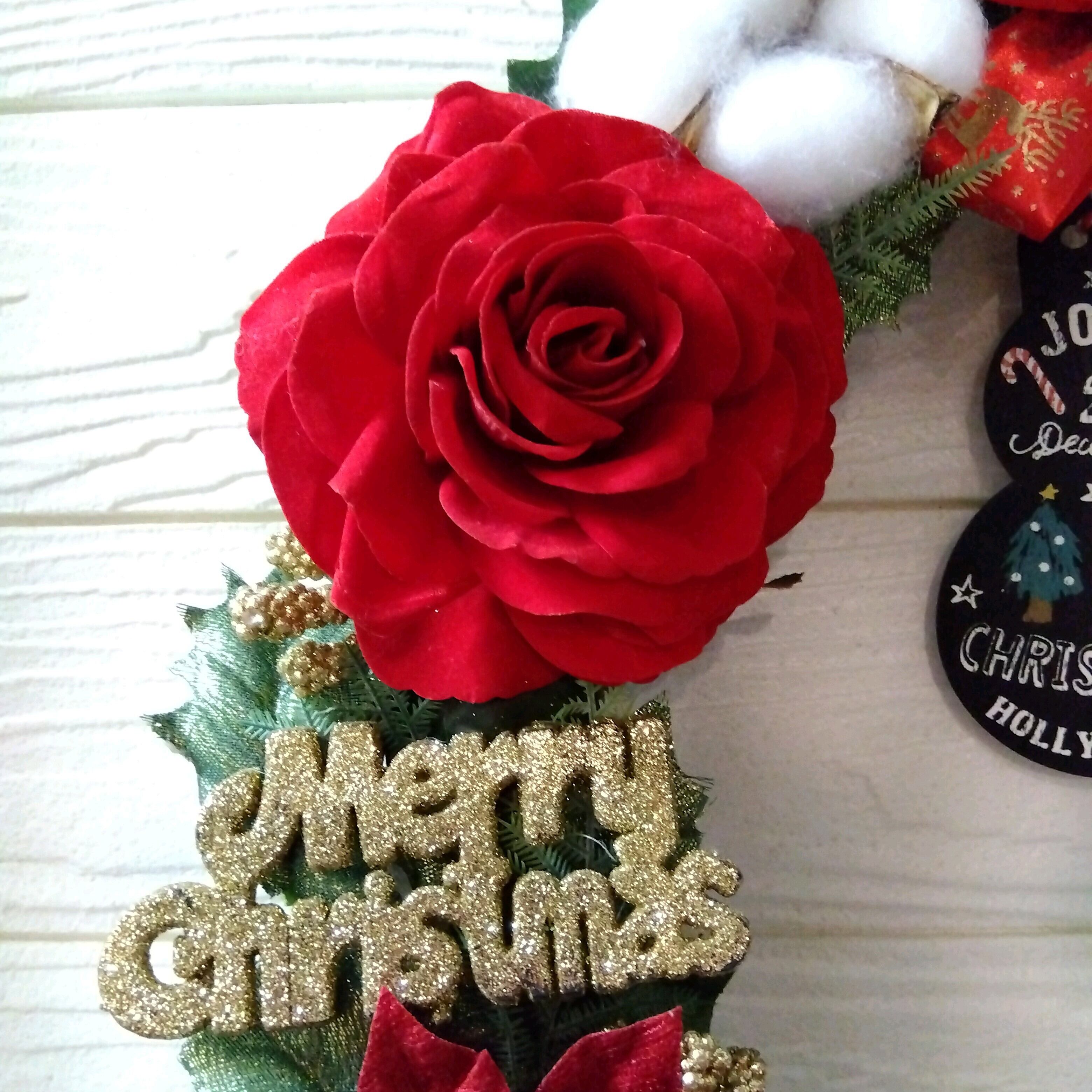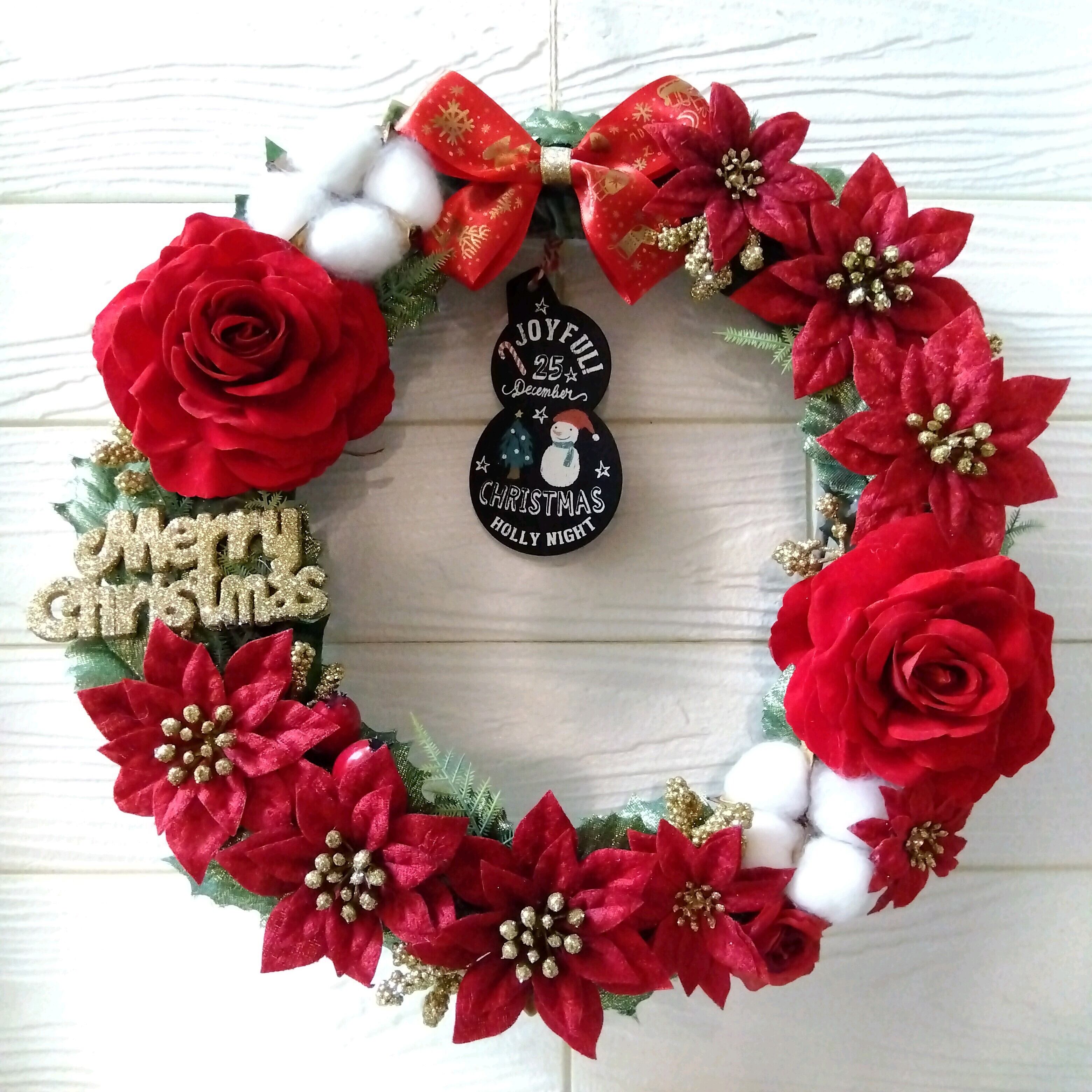 クリスマスリース ベルベットローズとポインセチアの華やかリース ビック
