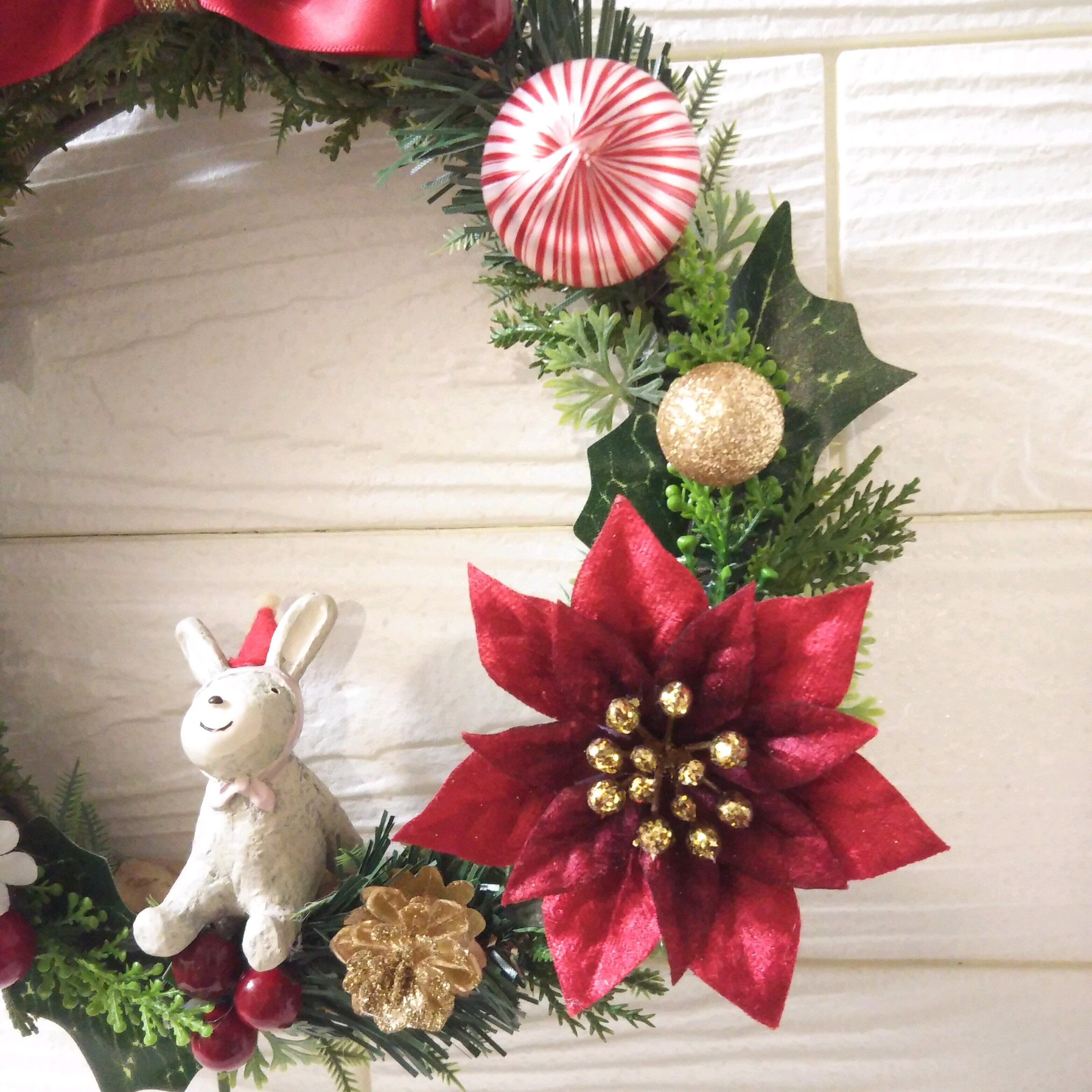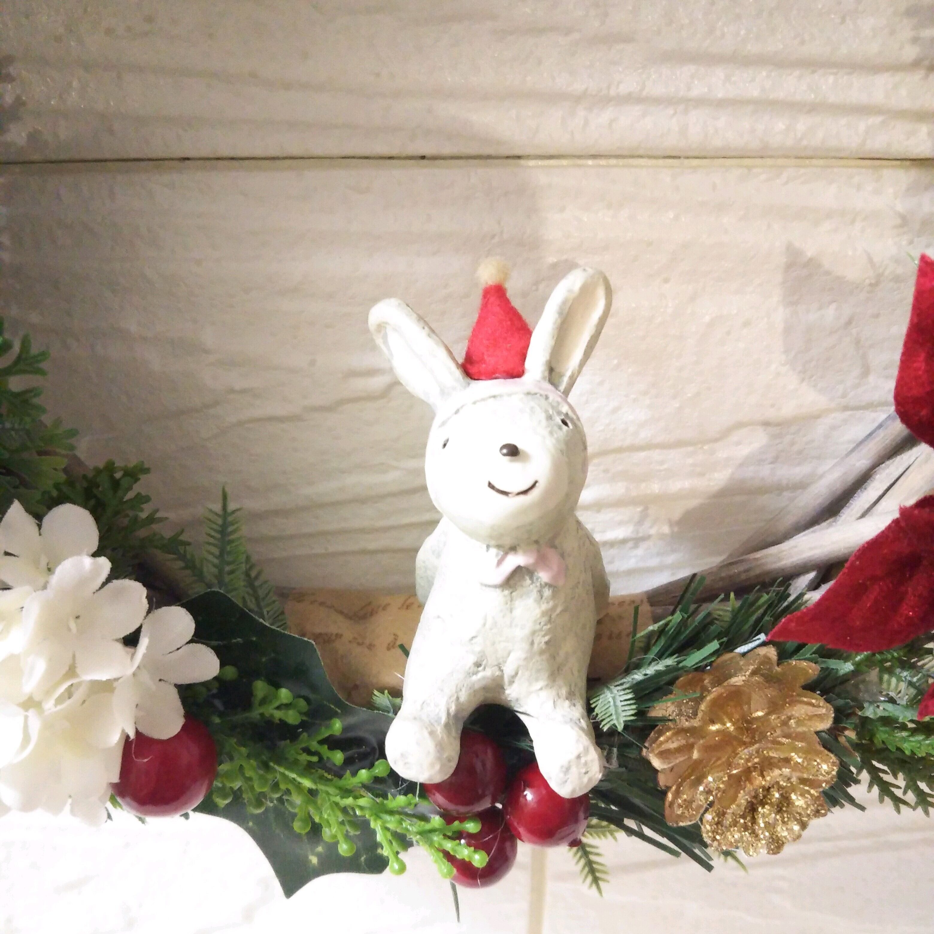 xmas クリスマスリース リンゴとポインセチア ウサギ