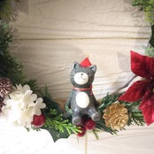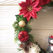 xmas クリスマスリース リンゴとポインセチア ネコ
