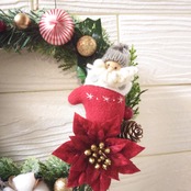 赤とグリーンを基調としたリースで、ポインセチアやリンゴ、コットン、松ぼっくりなどギュッと詰めてかわいらしい仕上りです♪
