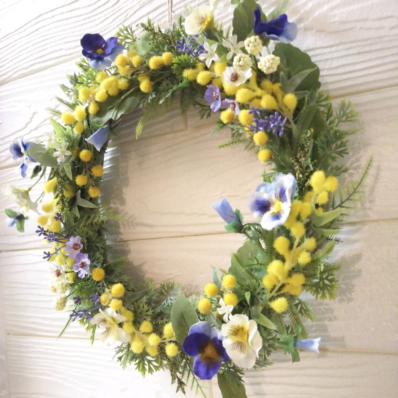 インテリア リース スプリング フラワーリース グリーン プレゼント ドアリース 引っ越し祝い 開店祝い 誕生日 ミモザ ミモザリース 春 スプリングリース 結婚 結婚式 結婚祝い 出荷祝い 新築祝い ギフト 母の日 祝い お祝い 退職祝い