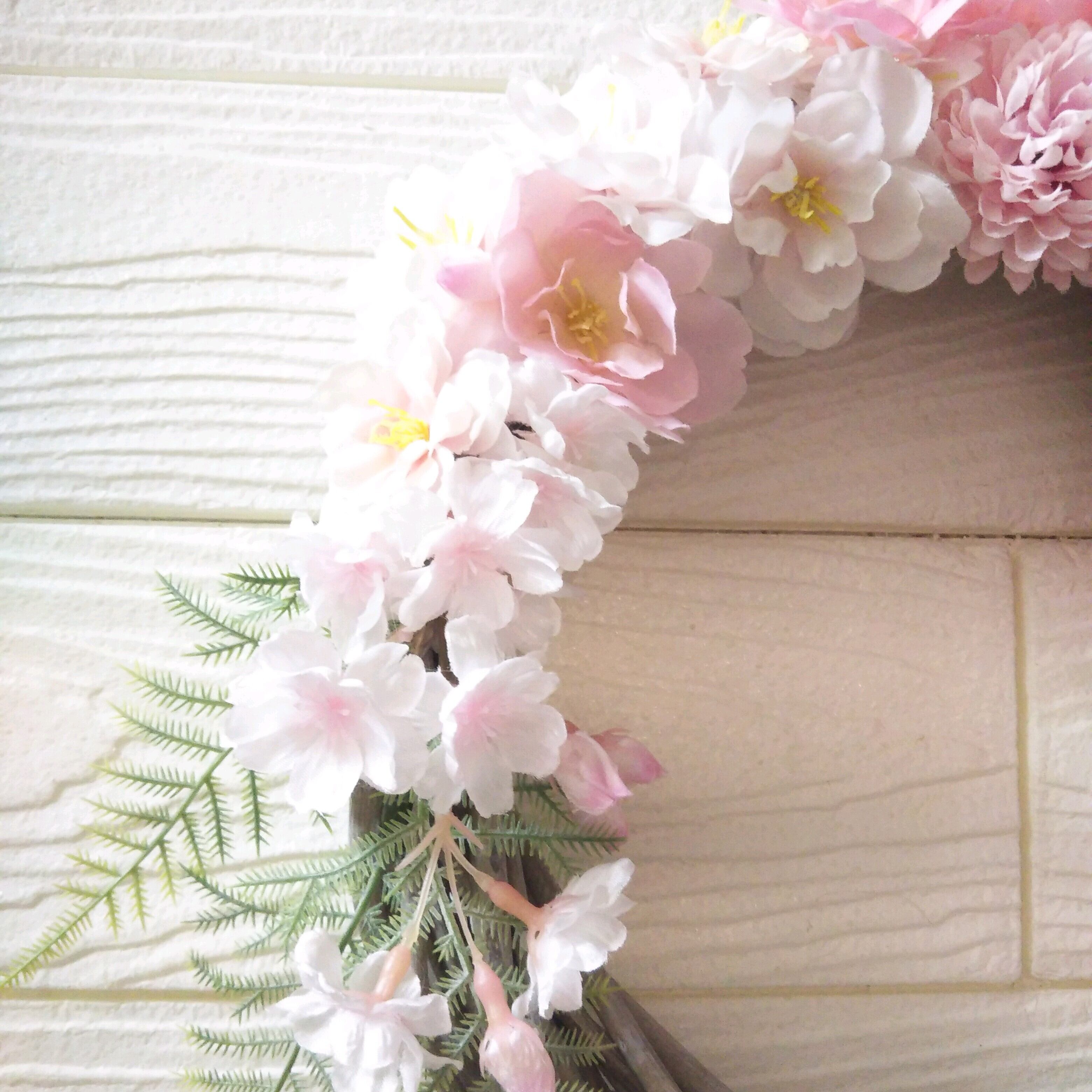 造花(アーティフィシャルフラワー)でできたサクラのリースです!