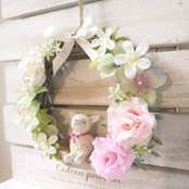 マスコット付きの造花(アーティフィシャルフラワー)でできた小さめのリースです!