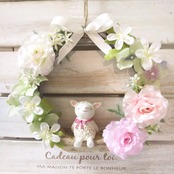 マスコット付きリース ローズ ピュア リース ヒツジ