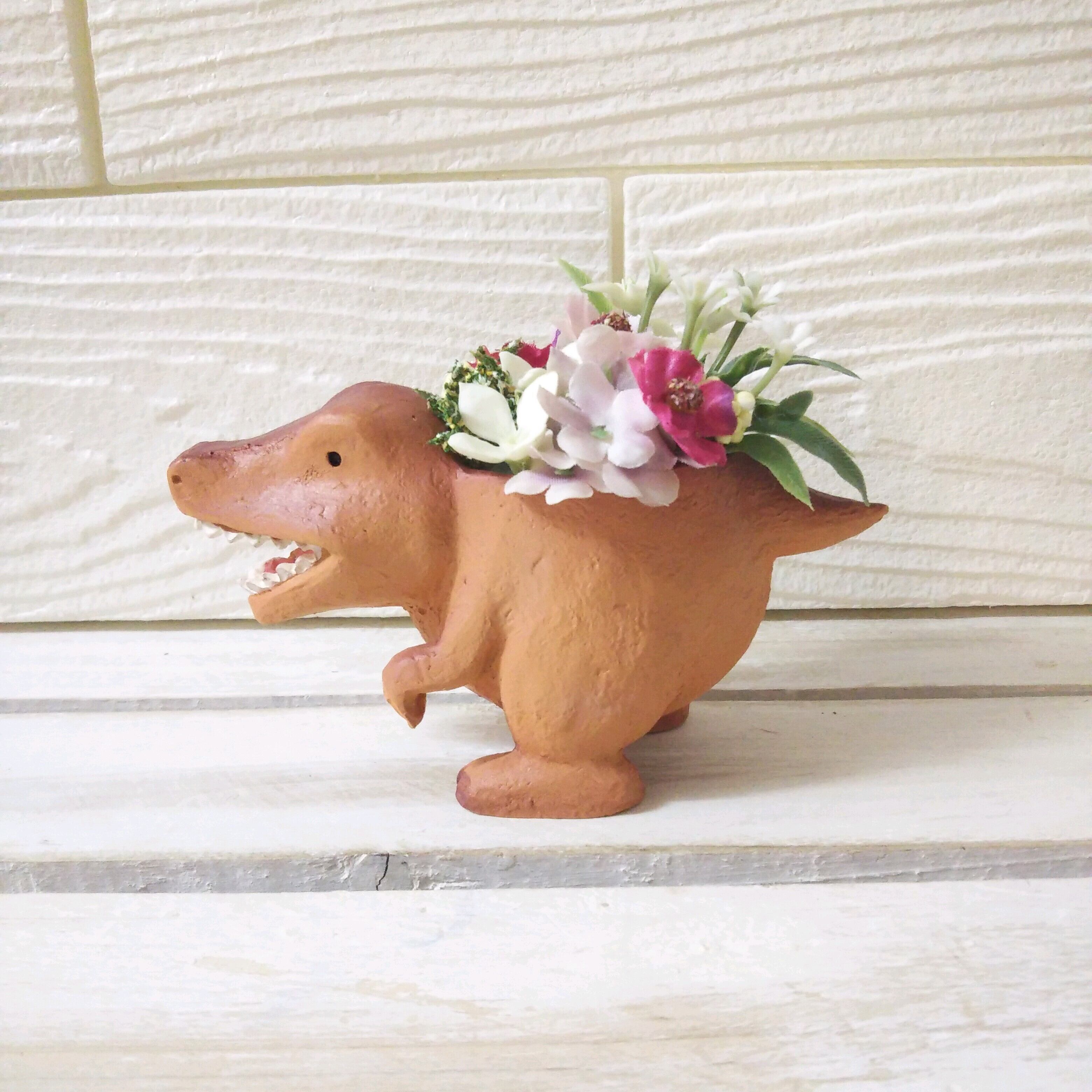 かわいい恐竜の造花(アーティフィシャルフラワー)のアレンジです!