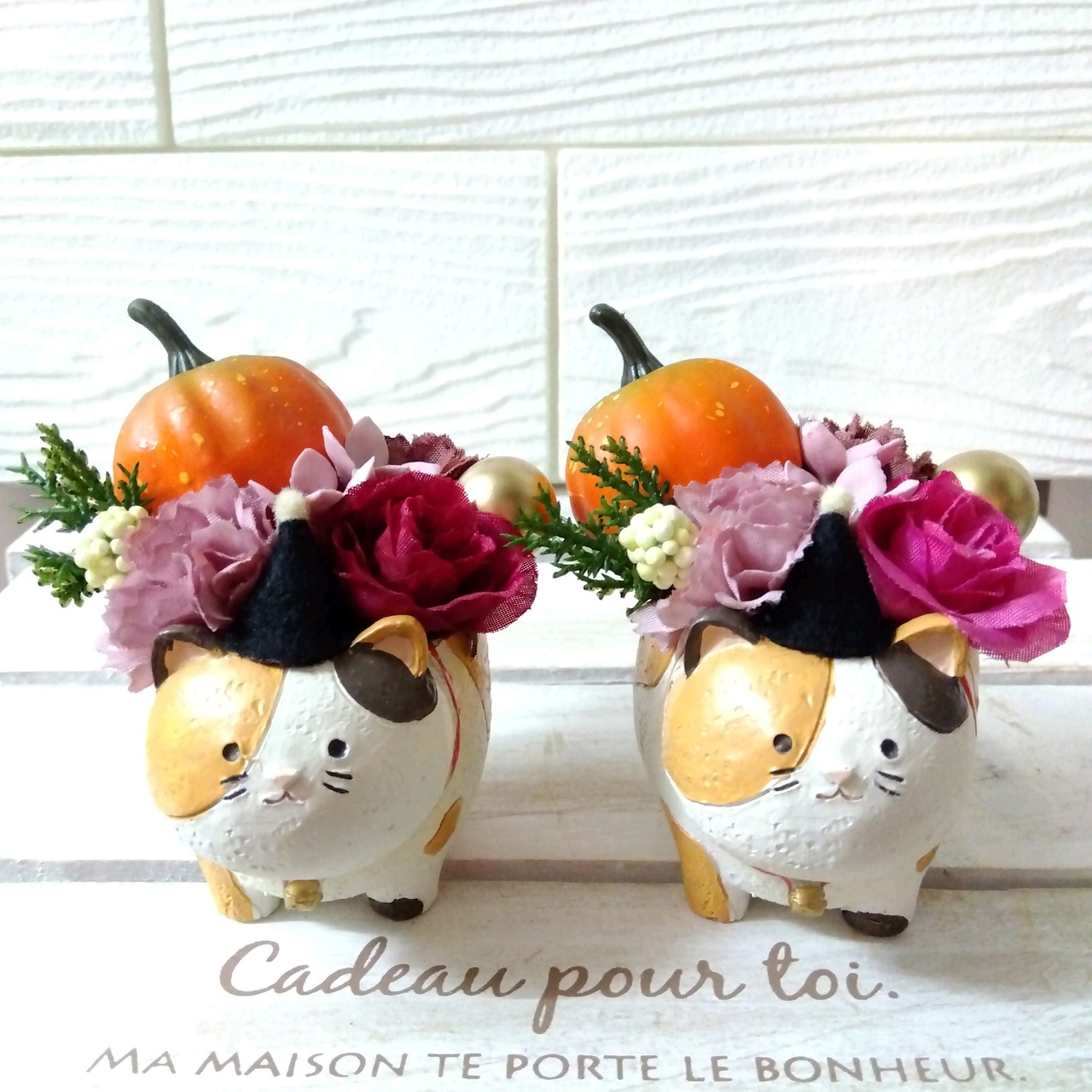 かわいい 三毛猫 の造花(アーティフィシャルフラワー)でできたハロウィンアレンジです!