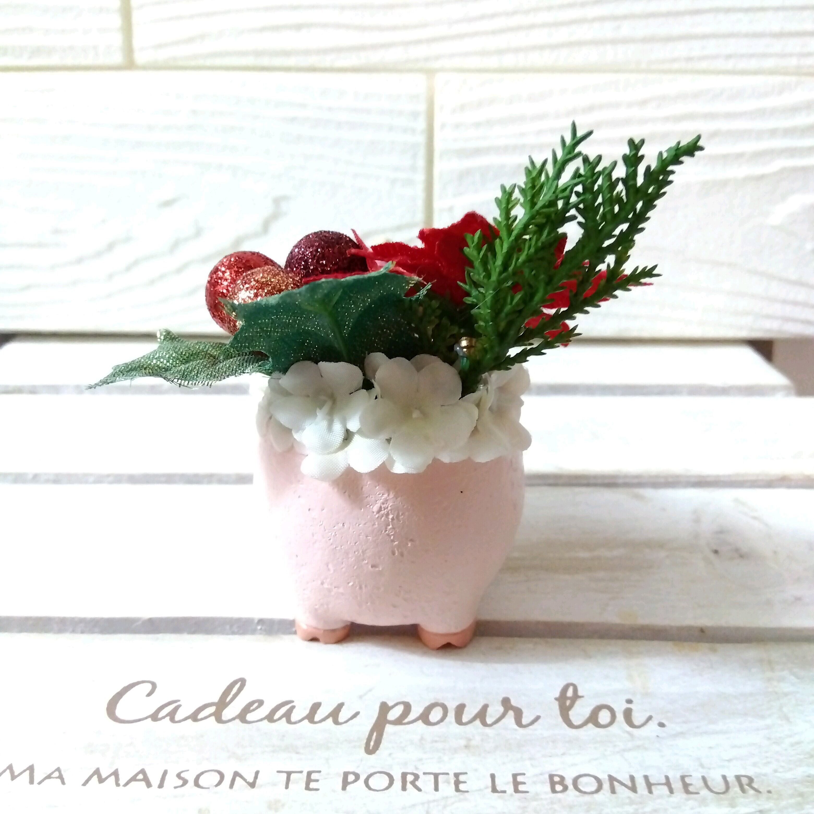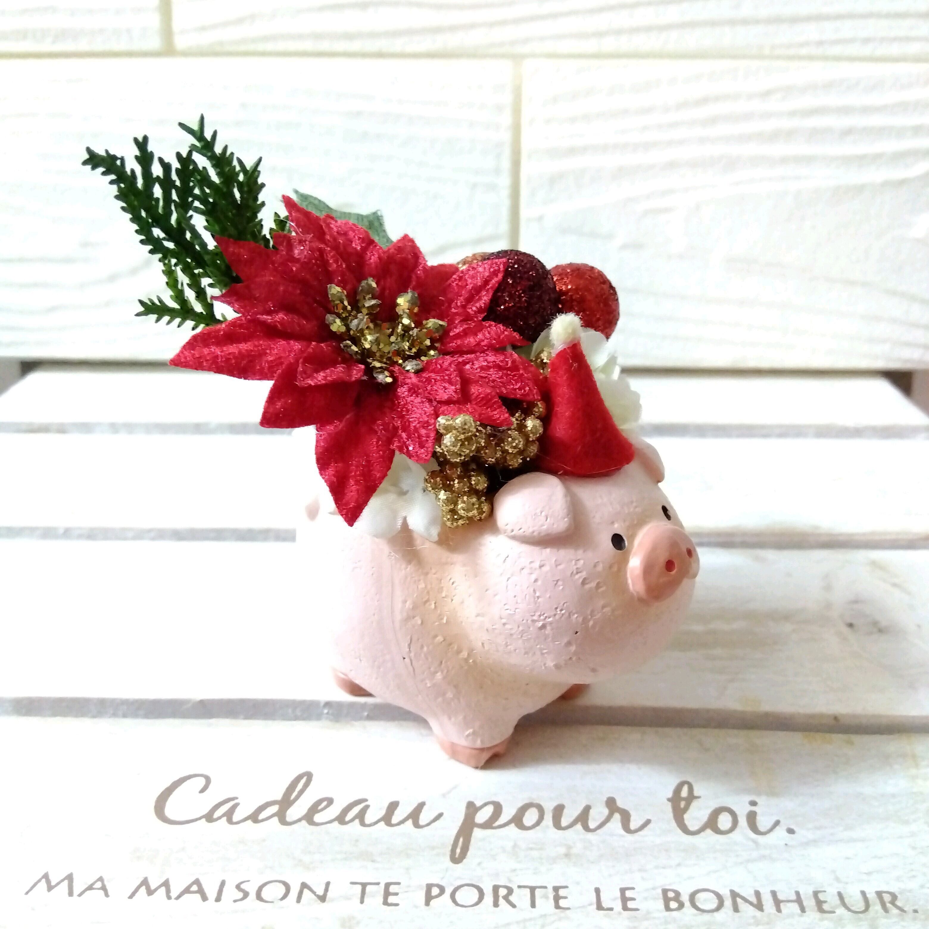 xmas クリスマス フラワーアレンジ インテリア ポインセチア ブタ