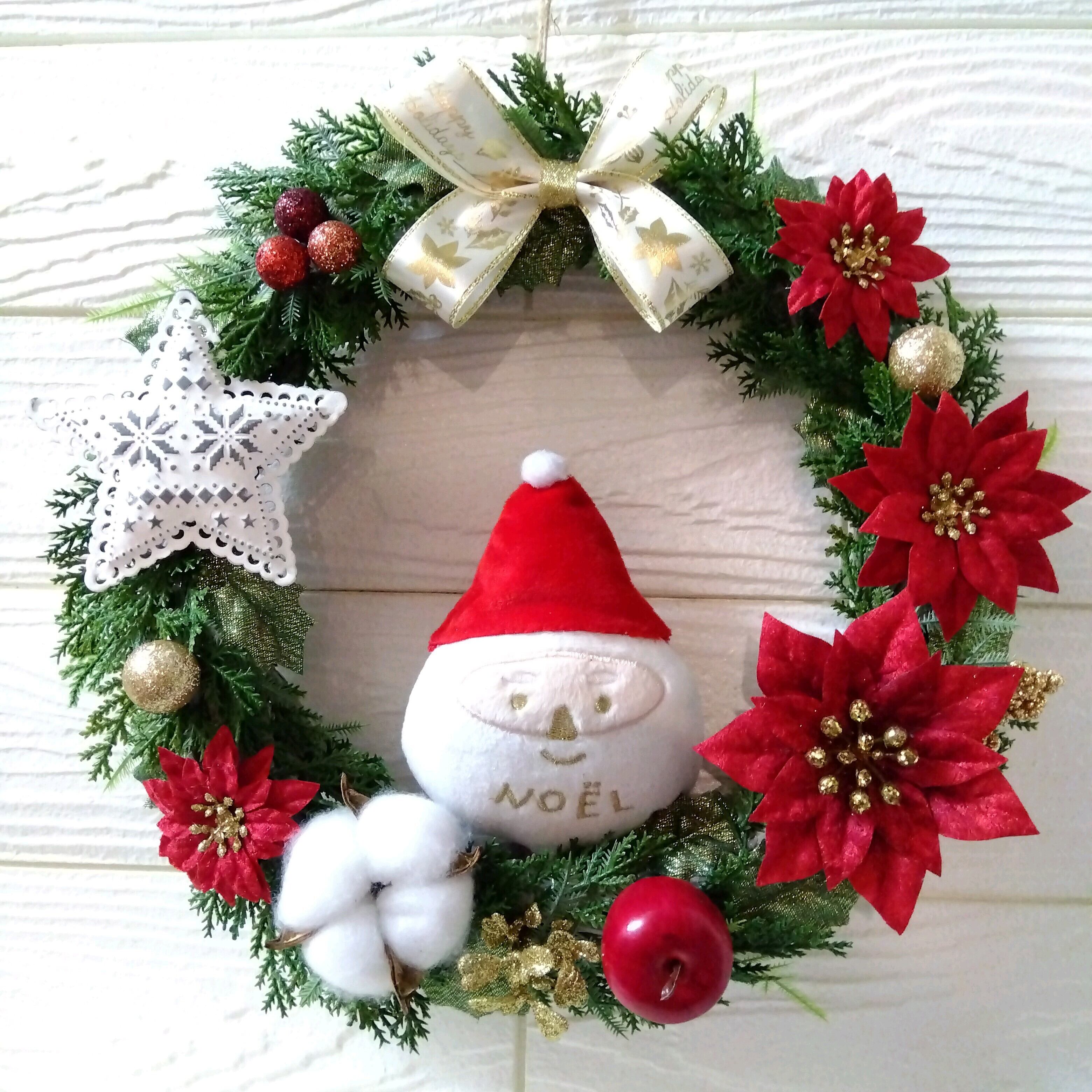 クリスマスリース ポインセチアとサンタクロース