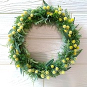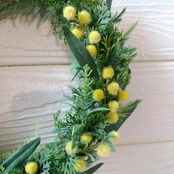 ミモザといろいろな葉っぱを使った春らしい明るい爽やかなリースです(*^^*)