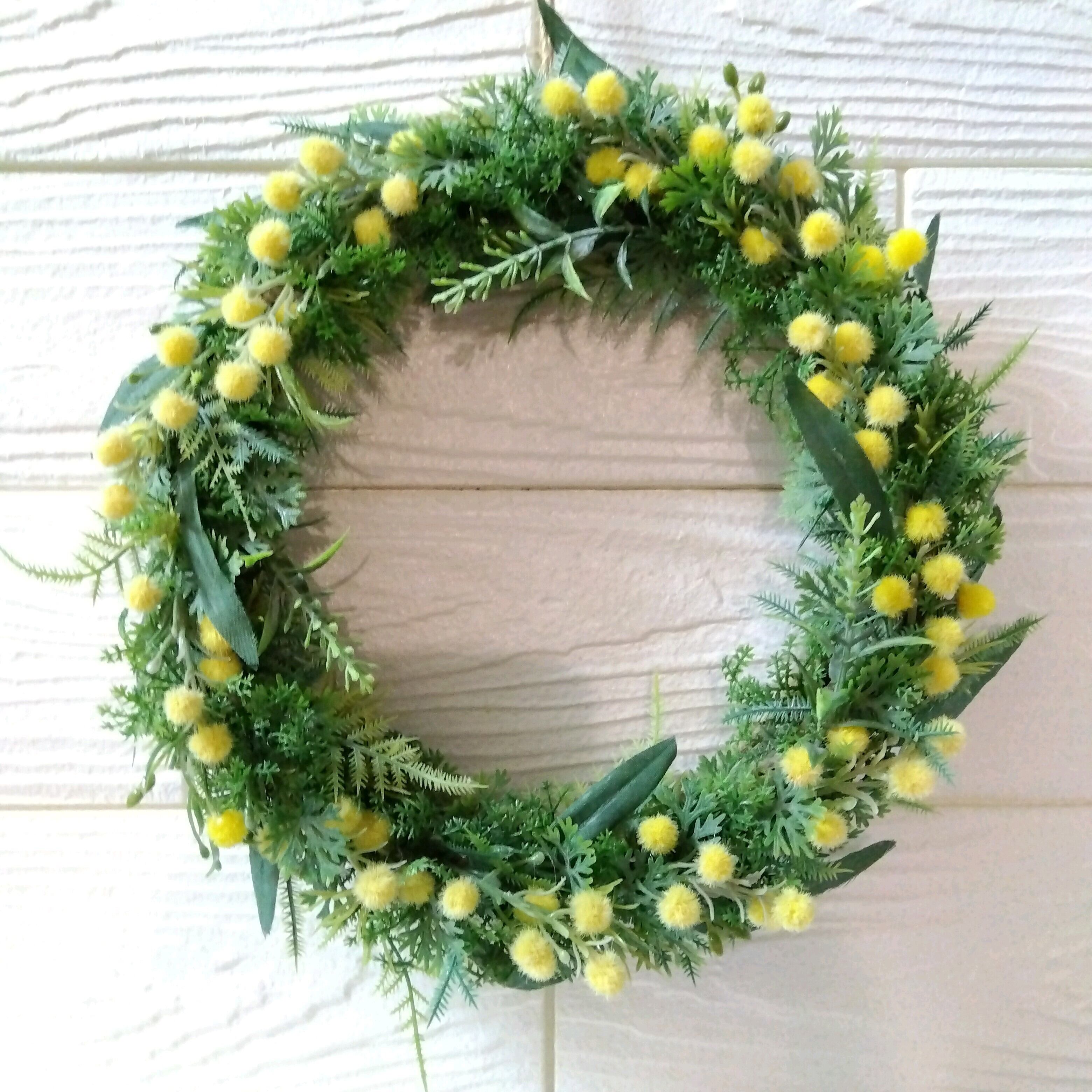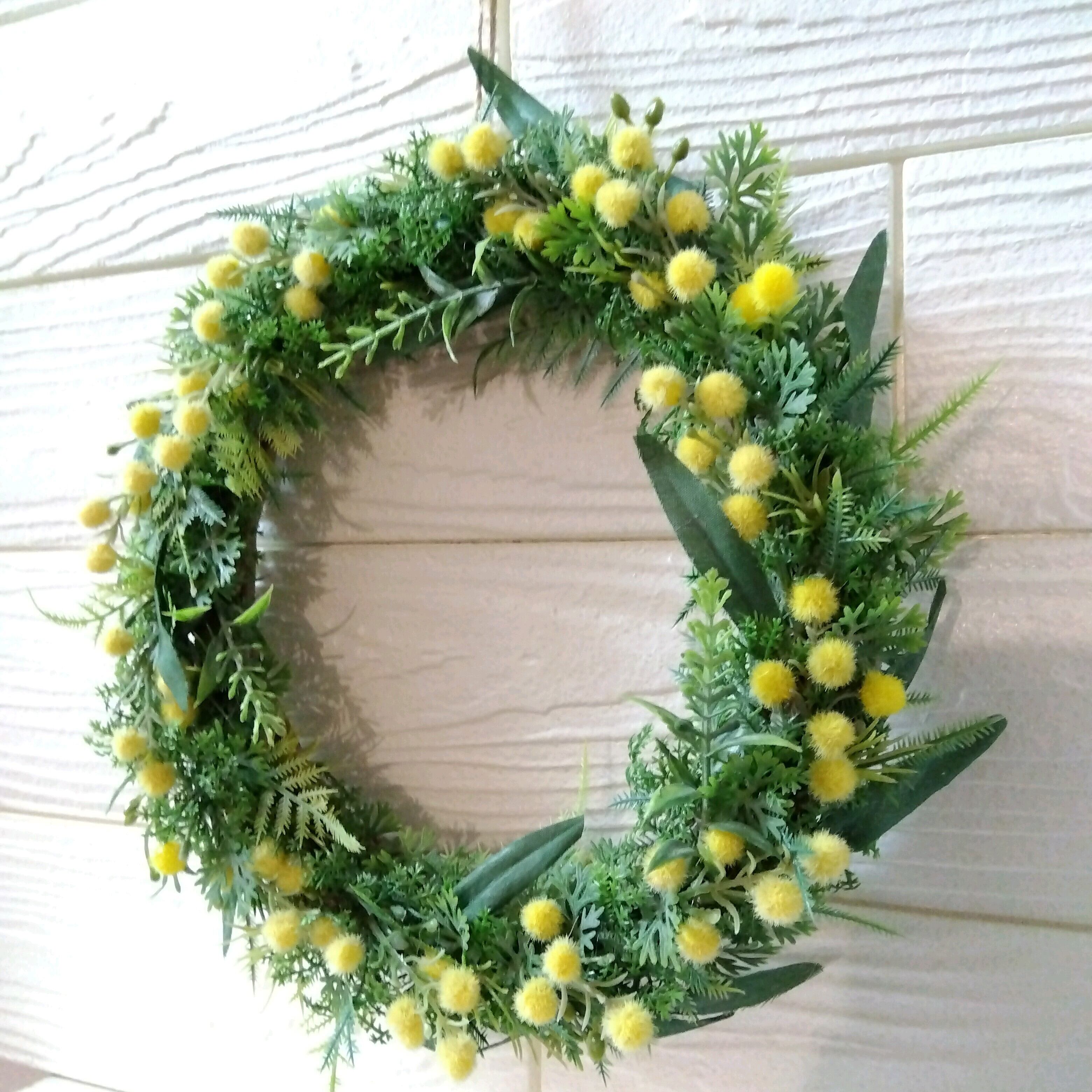 インテリア リース スプリング フラワーリース グリーン プレゼント ドアリース 引っ越し祝い 開店祝い 誕生日 ミモザ ミモザリース 春 スプリングリース ウエディング