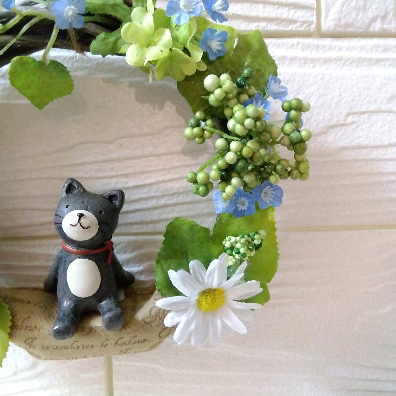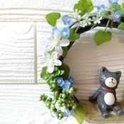 マスコット付きの造花(アーティフィシャルフラワー)でできた小さめのリースです!