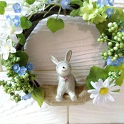 マスコット付きの造花(アーティフィシャルフラワー)でできた小さめのリースです!