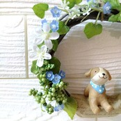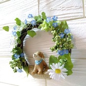 マスコット付きの造花(アーティフィシャルフラワー)でできた小さめのリースです!