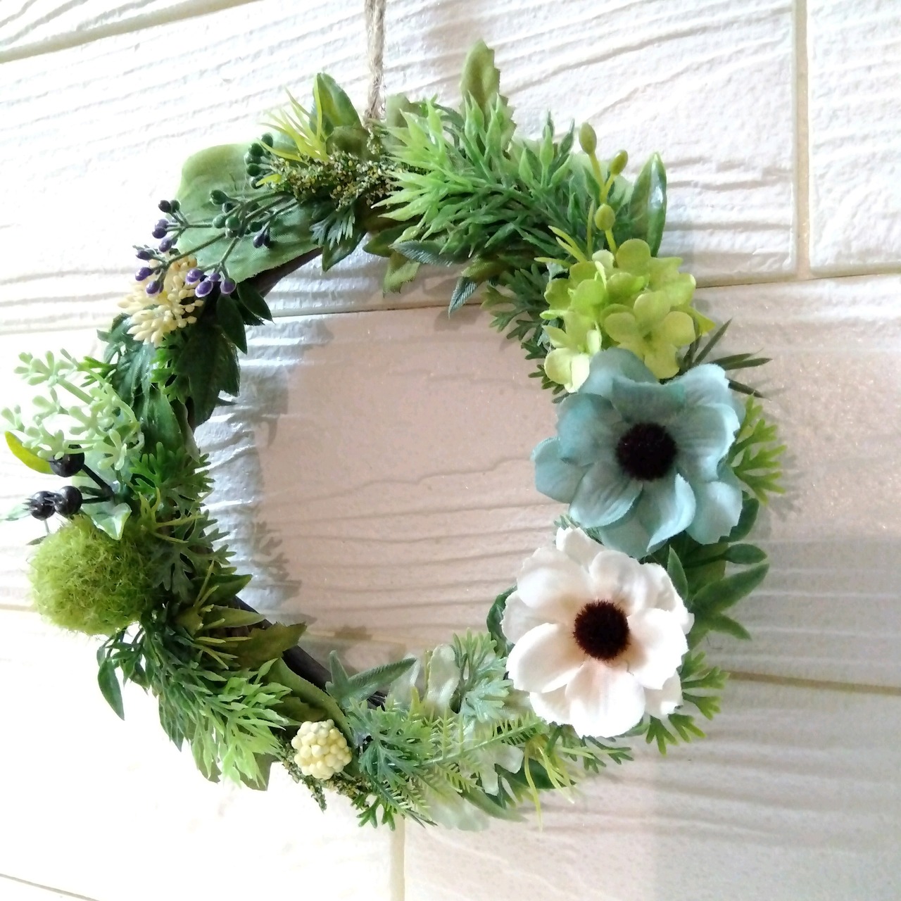 母の日 父の日 プレゼント ギフト 送別品 贈呈品 結婚式 フラワーアレンジ 退職 敬老の日 インテリア アーティフィシャルフラワー 誕生日 新築祝い 開店祝い 癒し グリーン リース デルフィニウム