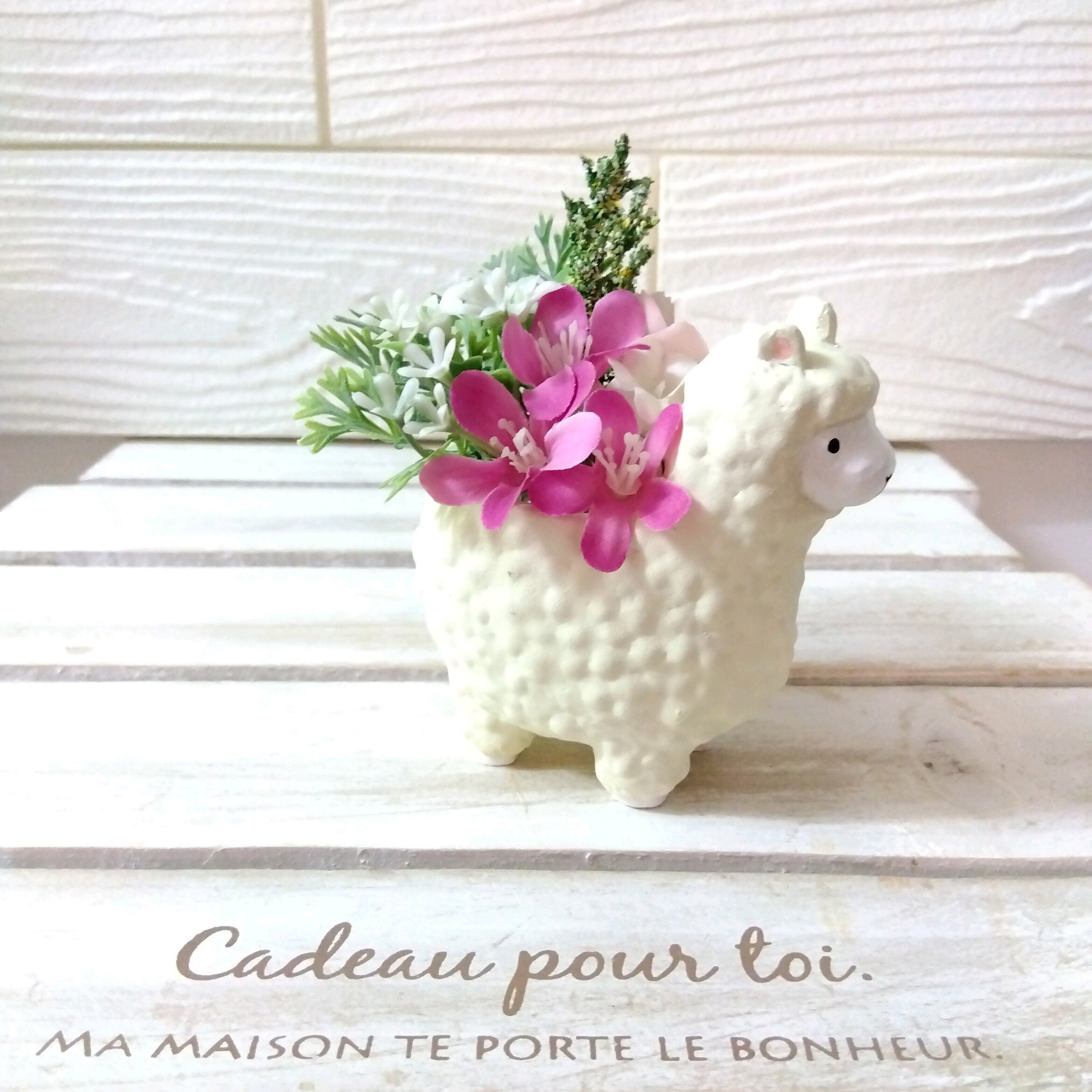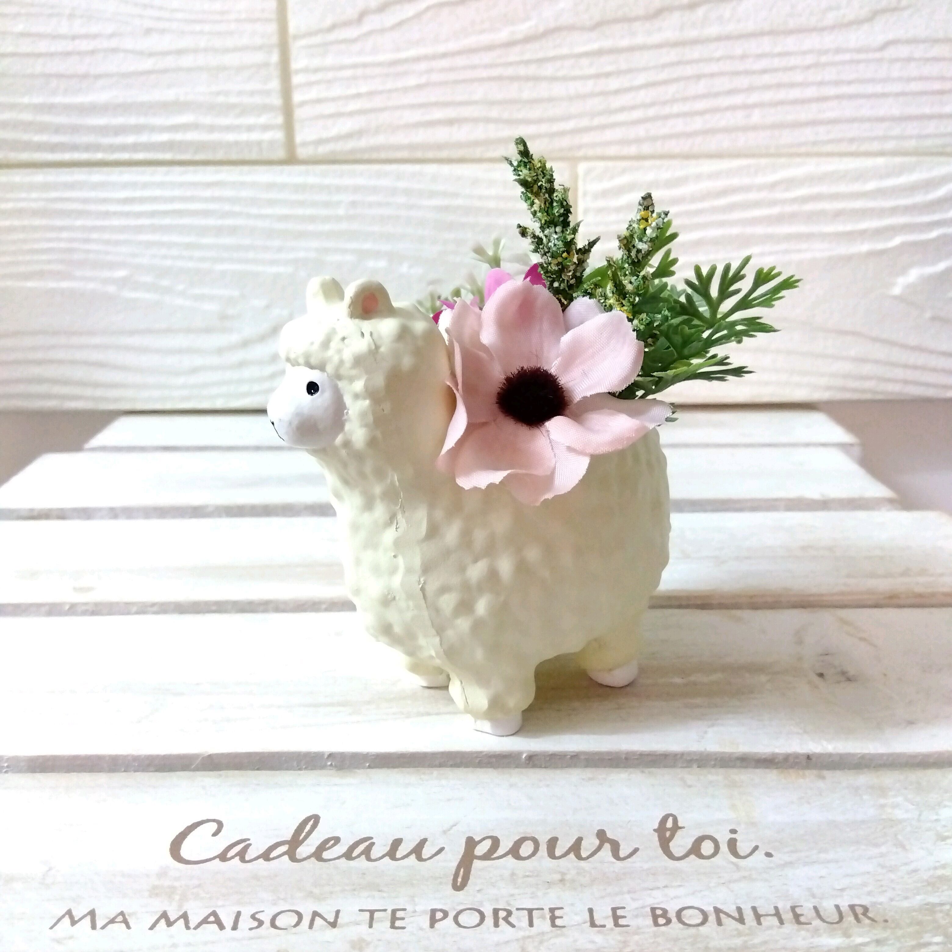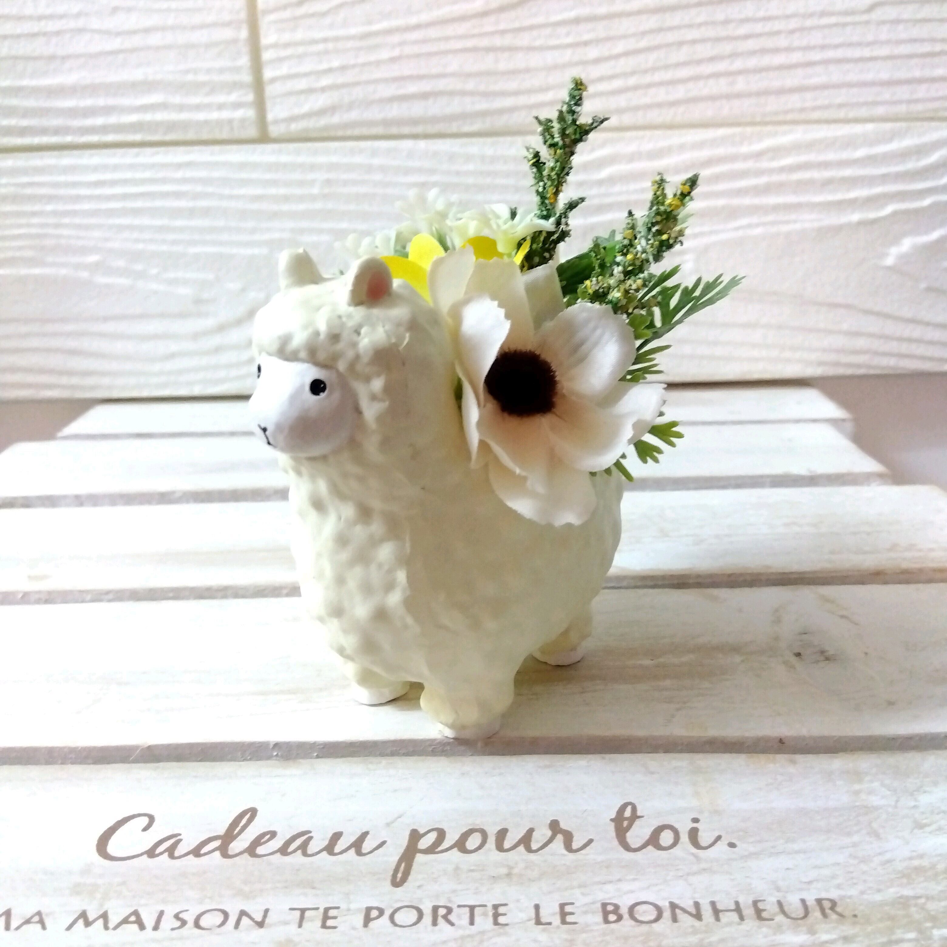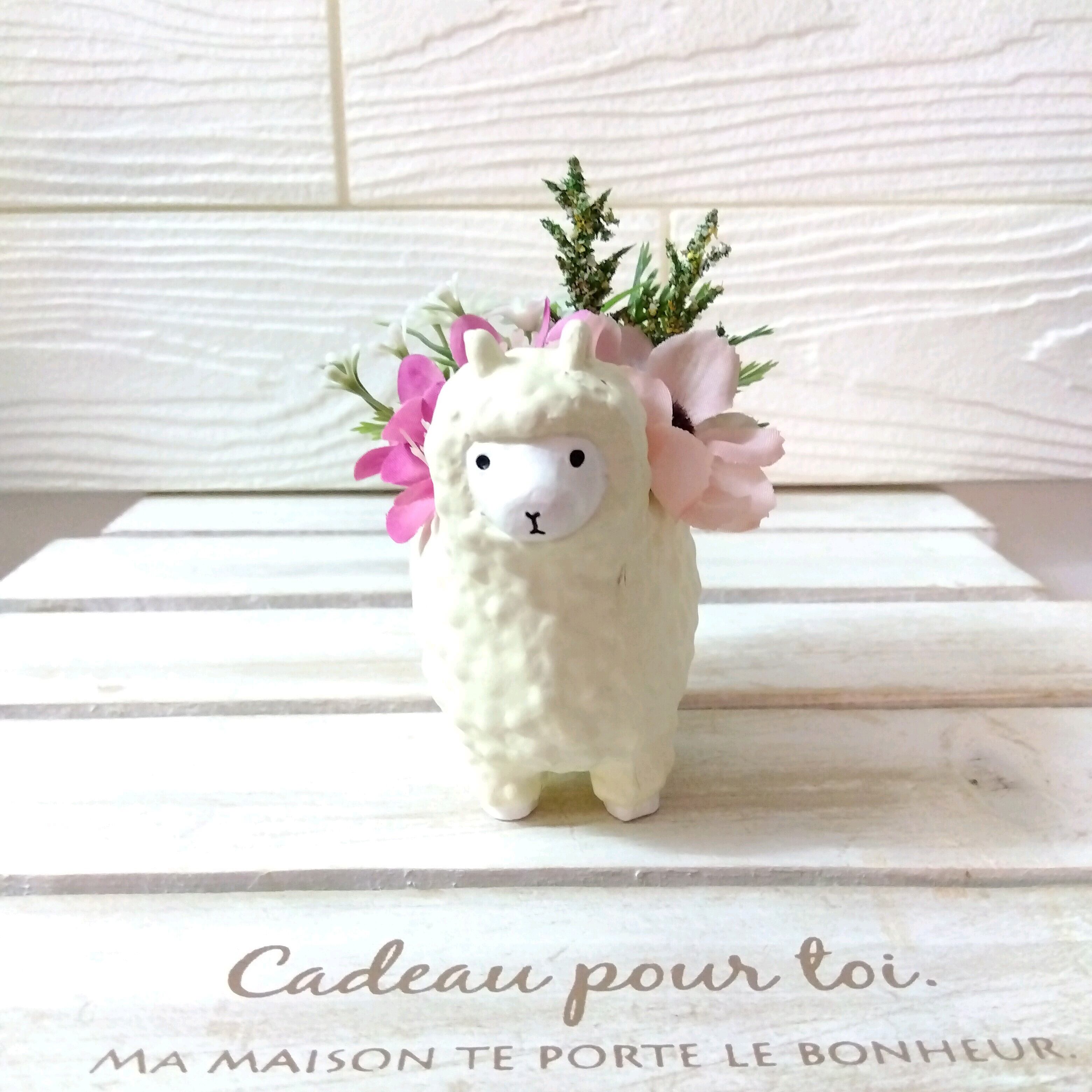 母の日 父の日 プレゼント ギフト 送別品 贈呈品 結婚式 フラワーアレンジ 退職 敬老の日 インテリア アーティフィシャルフラワー 誕生日 新築祝い 開店祝い 癒し 結婚祝い 送別品 アルパカ アニマル パステル 置物