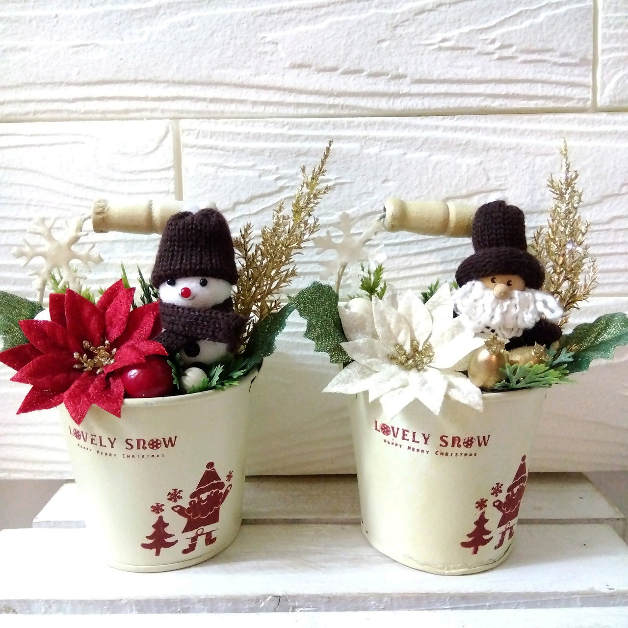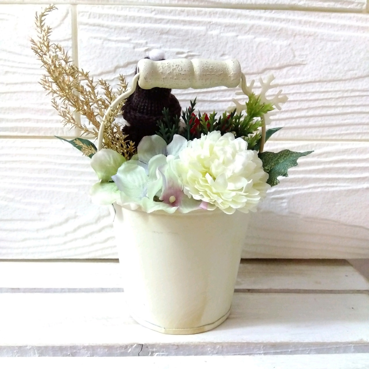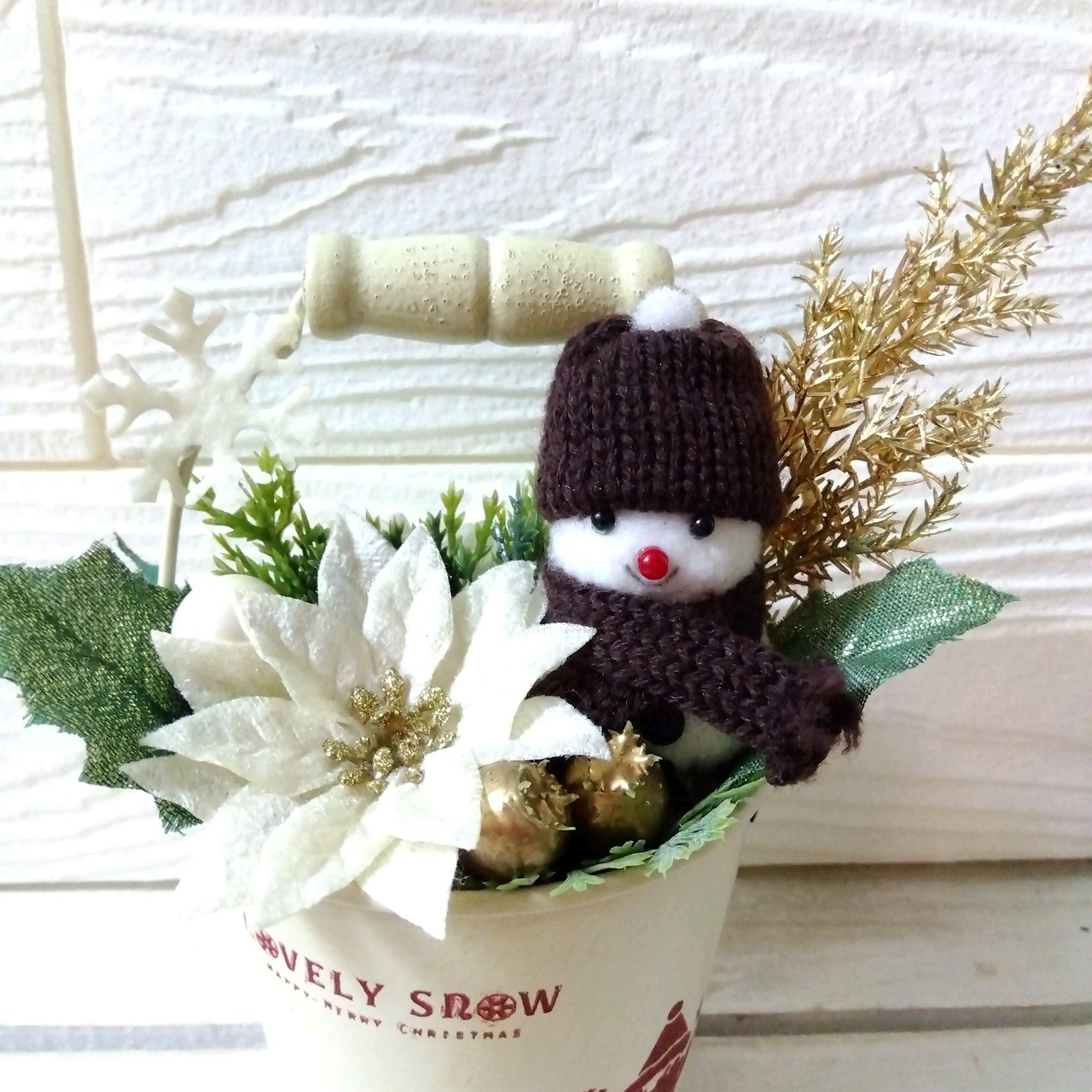 xmas フラワーアレンジ インテリア サンタ 雪だるま