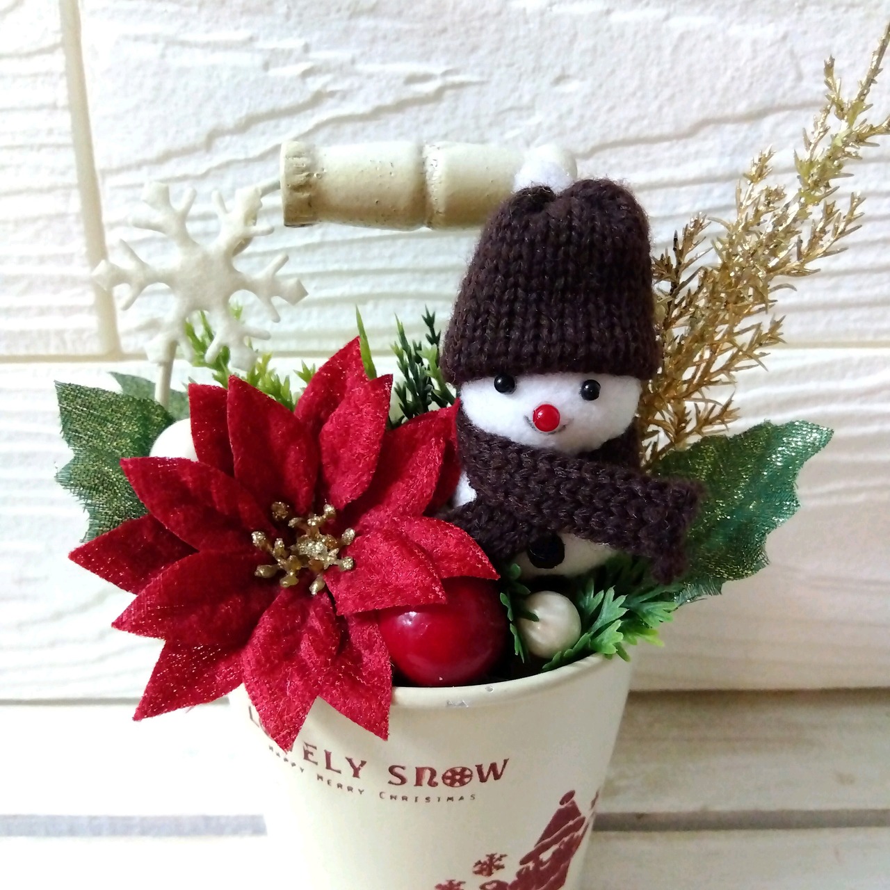 プレゼント ギフト 送別品 贈呈品 結婚式 フラワーアレンジ 退職 インテリア アーティフィシャルフラワー 誕生日 新築祝い 開店祝い 癒し 結婚祝い 送別品 祝い 置物 冬 雪だるま スノーマン ポインセチア
