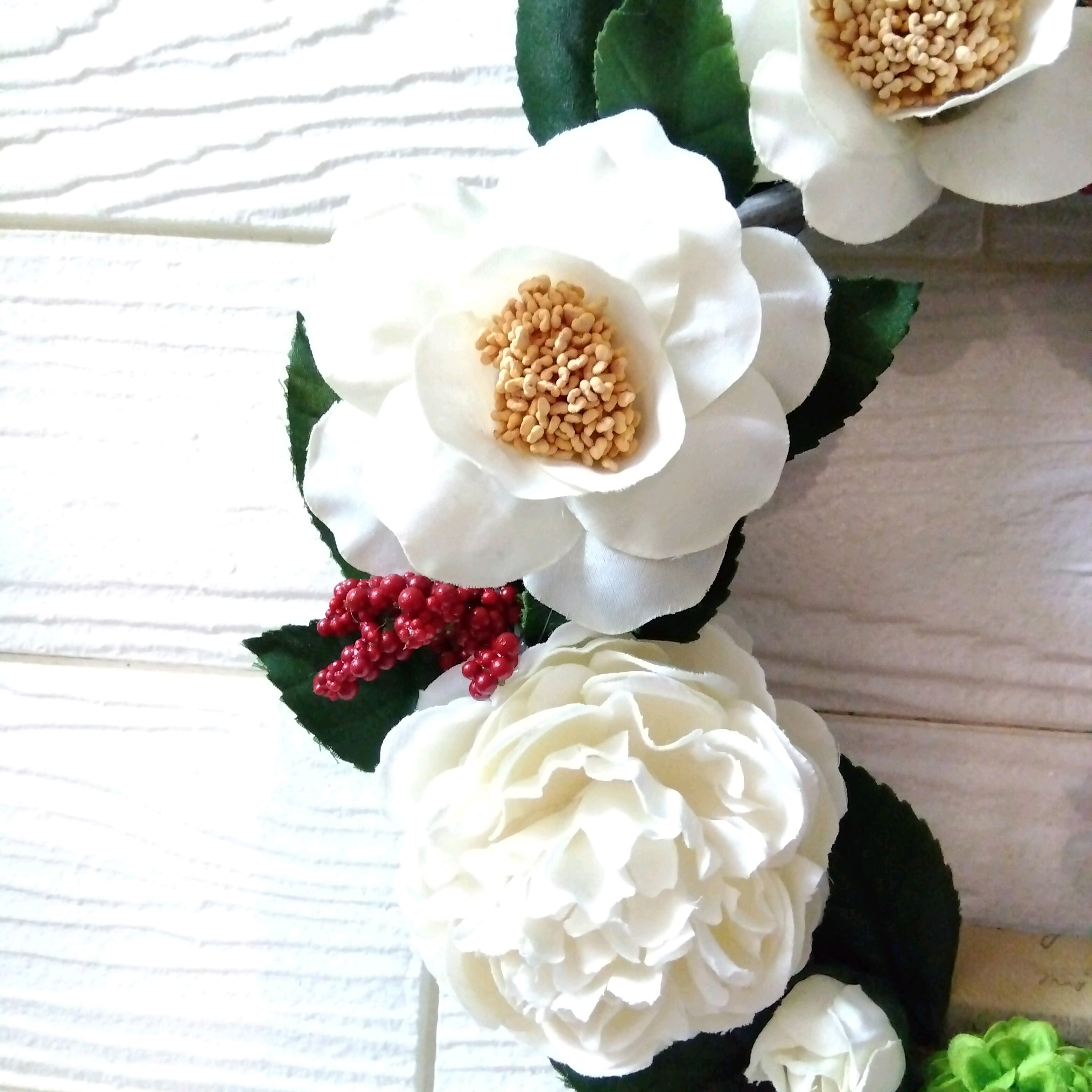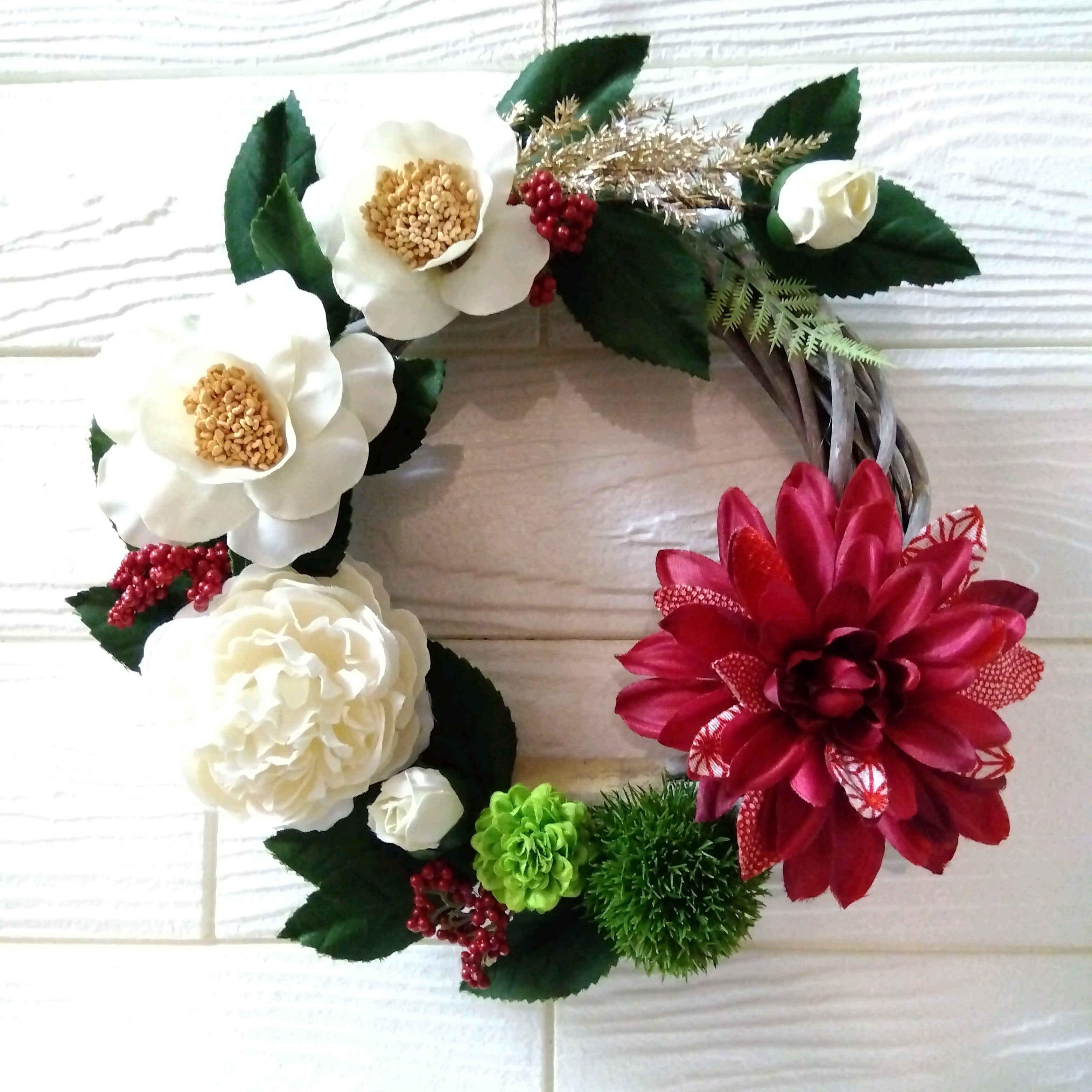 造花(アーティフィシャルフラワー)でできた和風な、お正月のリースです!