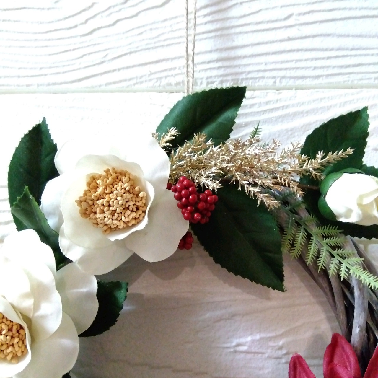 造花(アーティフィシャルフラワー)でできた和風な、お正月のリースです!