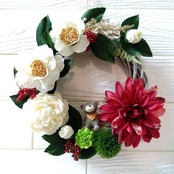 造花(アーティフィシャルフラワー)でできた和風な、お正月のリースです!