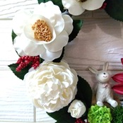 お正月 ダリア と 椿 の 和風リース 紅白 ウサギ