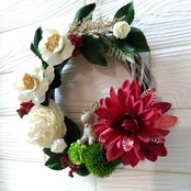 造花(アーティフィシャルフラワー)でできた和風な、お正月のリースです!