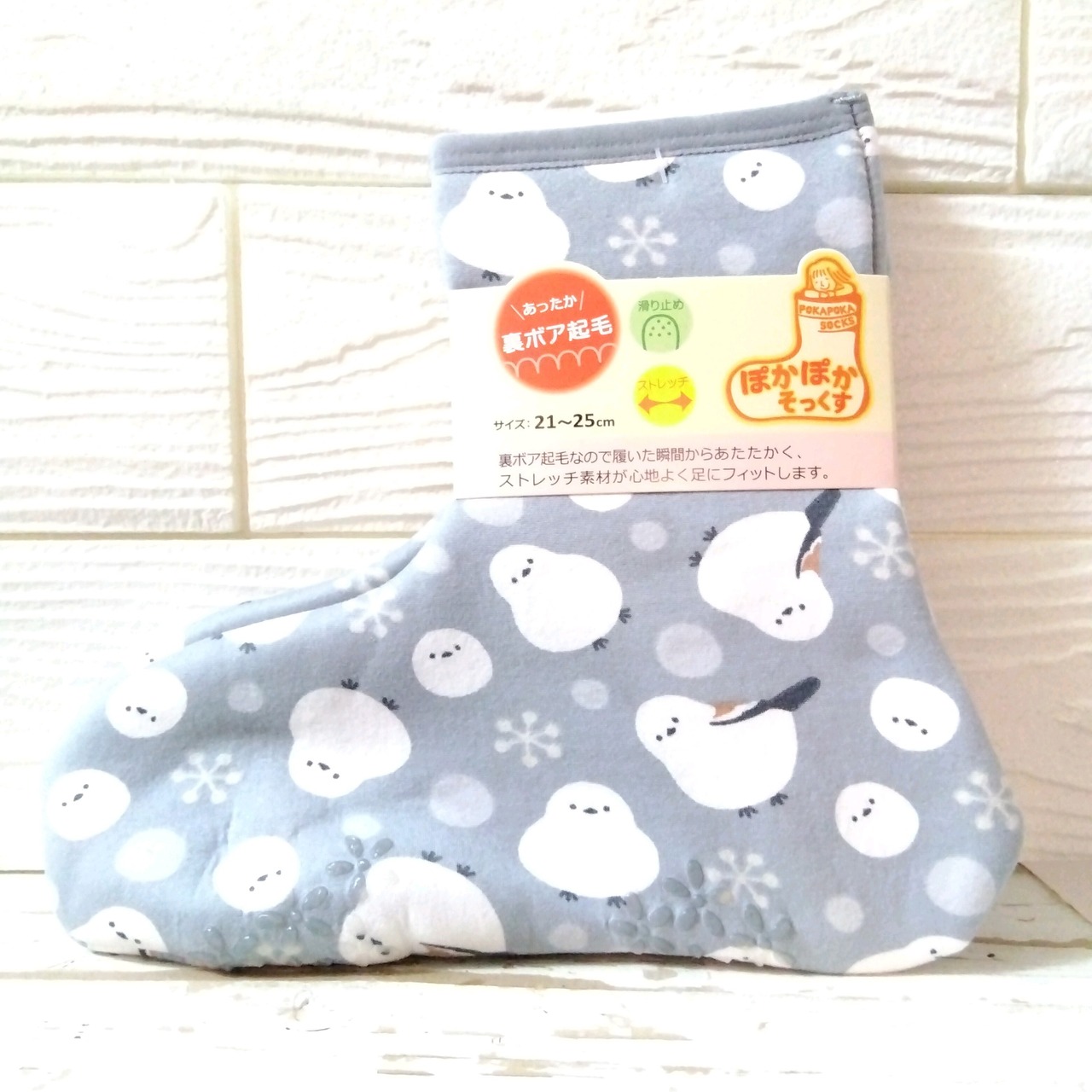 ぽかぽかくつした アンクル(シマエナガ グレー)