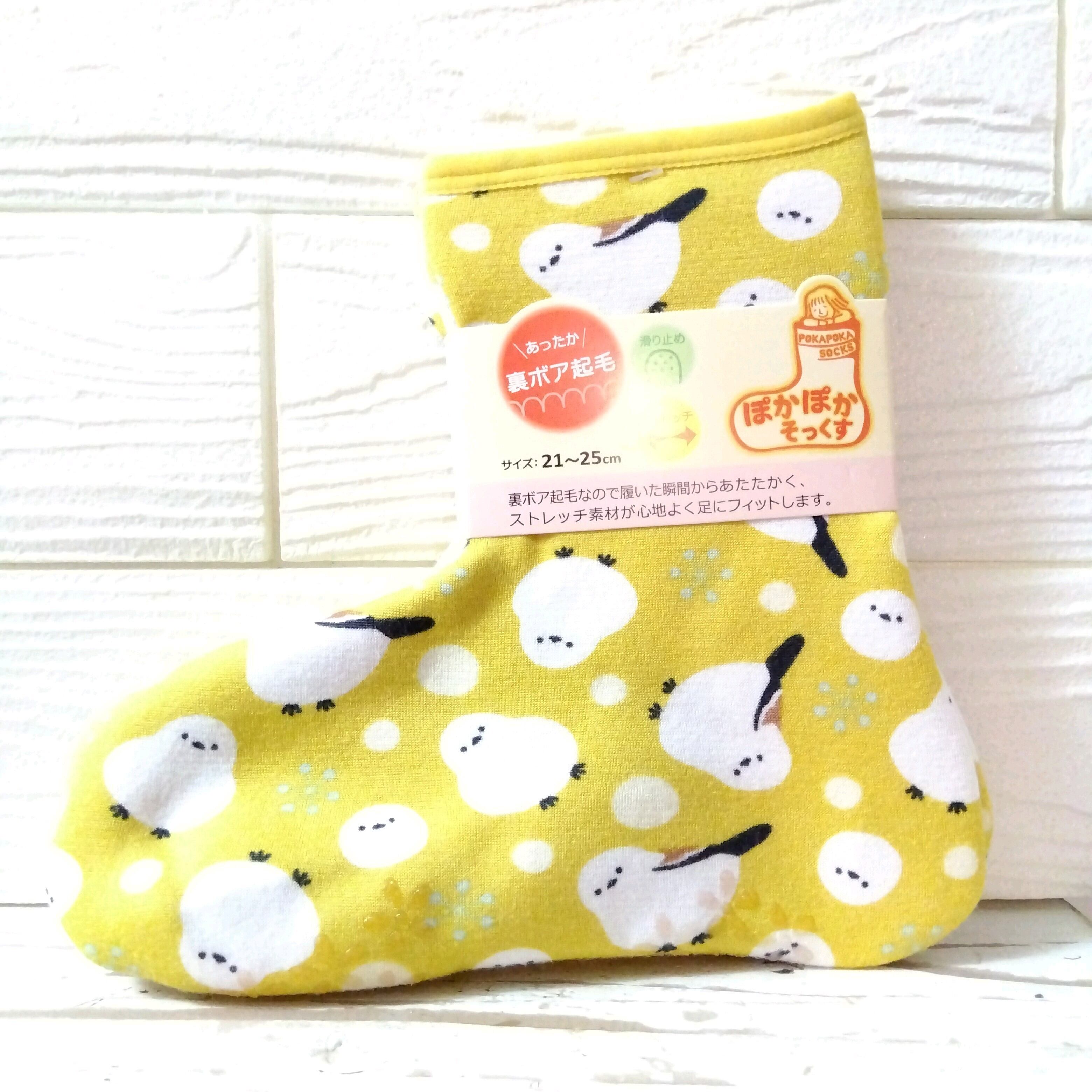 ぽかぽかくつした アンクル(シマエナガ イエロー)