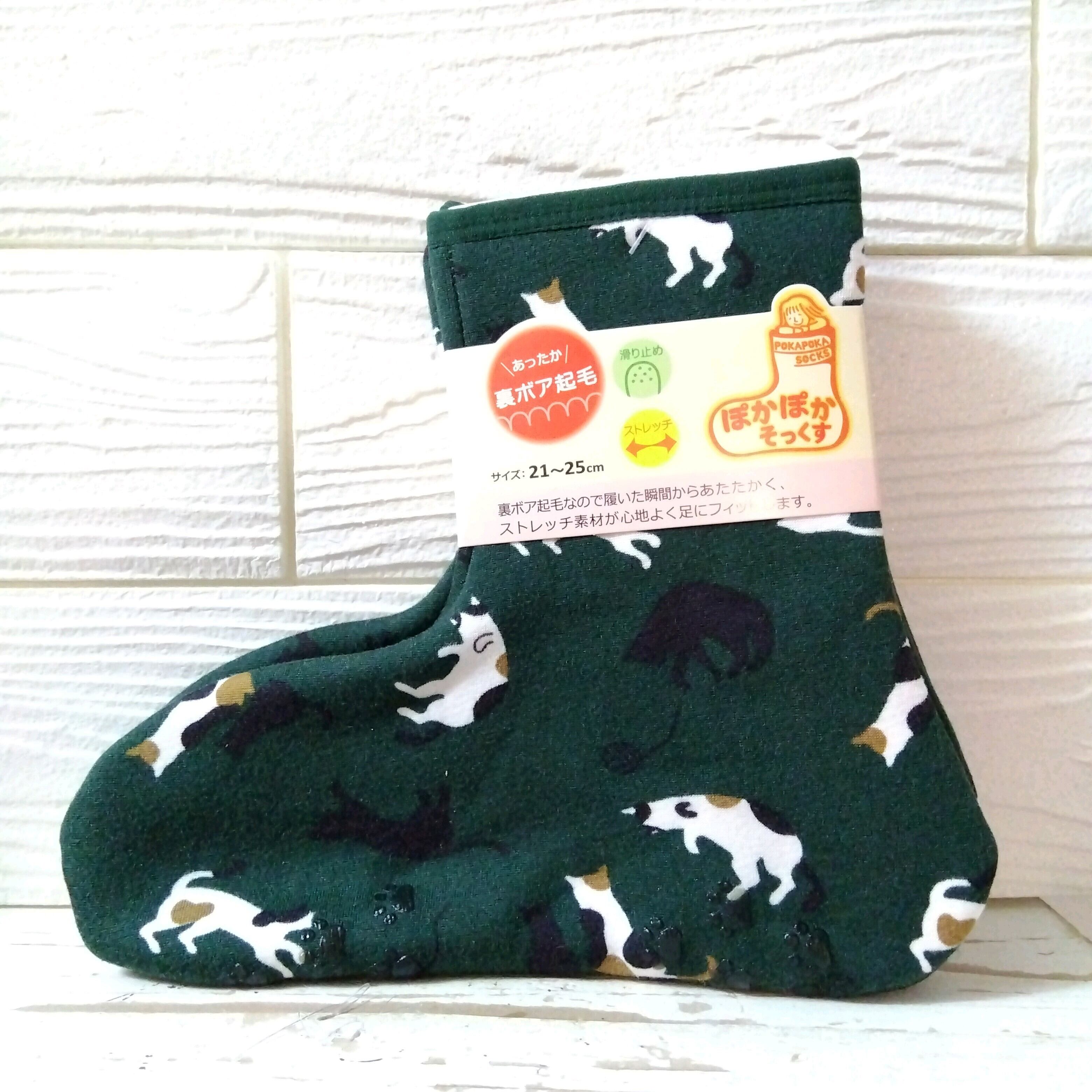 中がモコモコになっていて、とっても温かいくつしたです!滑り止めが付いているのでスリッパ代わりにもなりますょ♪